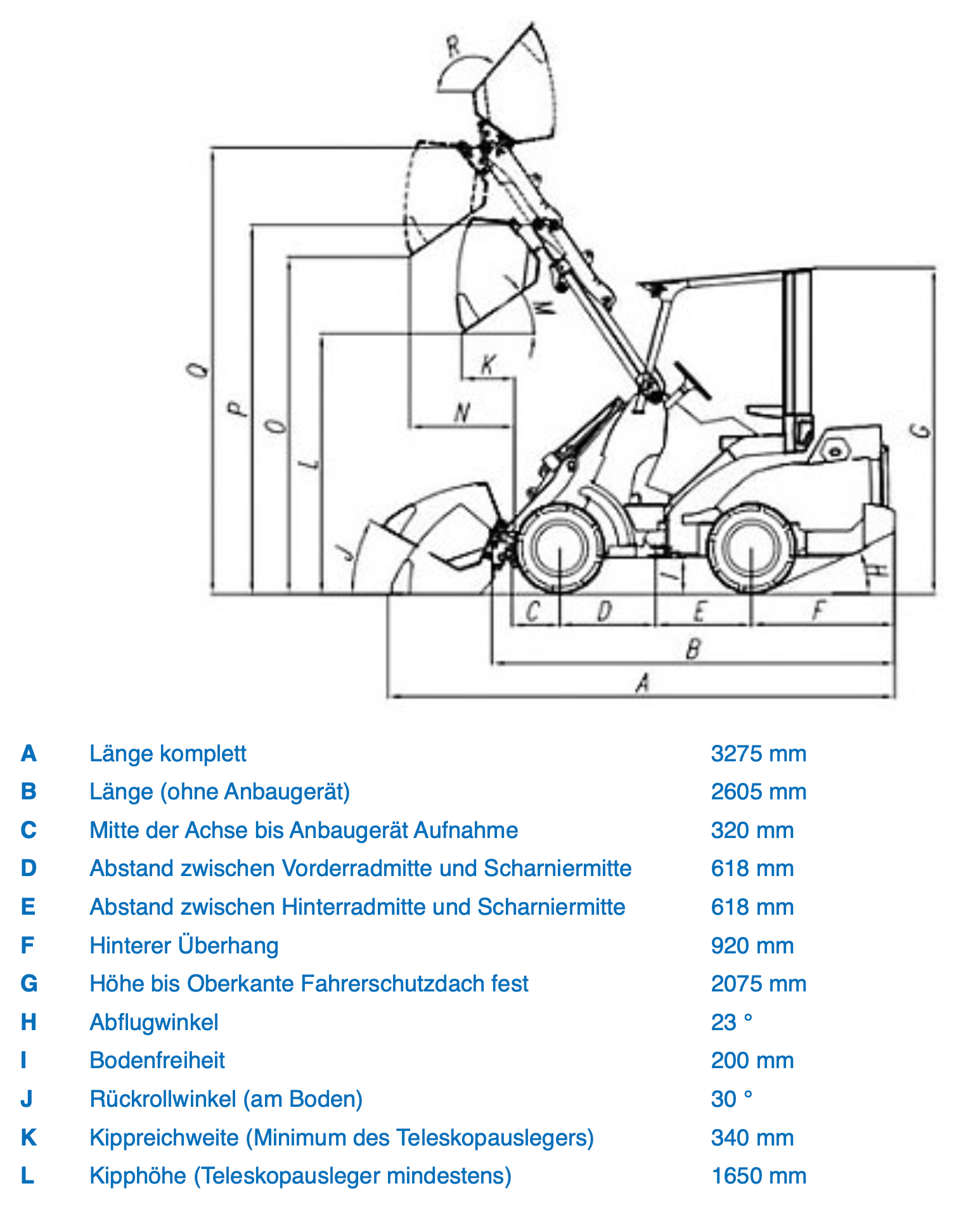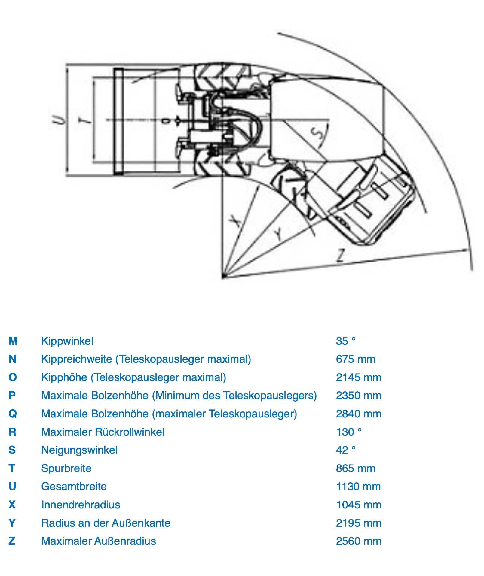 | Kipplast ohne Anbaugerät | 1350 kg (Maschine gerade und Teleskopausleger min.) |